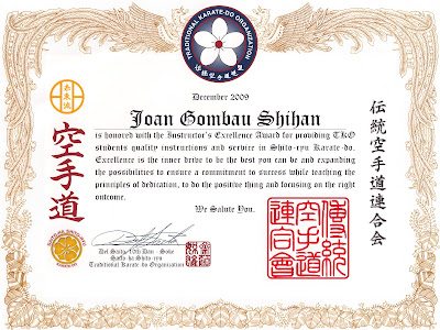 En data d’avui, 17 de desembre de 2009, s’ha comunicat al Shihan Joan Gombau que se li ha concedit el reconeixement de “TKO Instructor Excellence”, reconeixent així la qualitat del nostre grup.